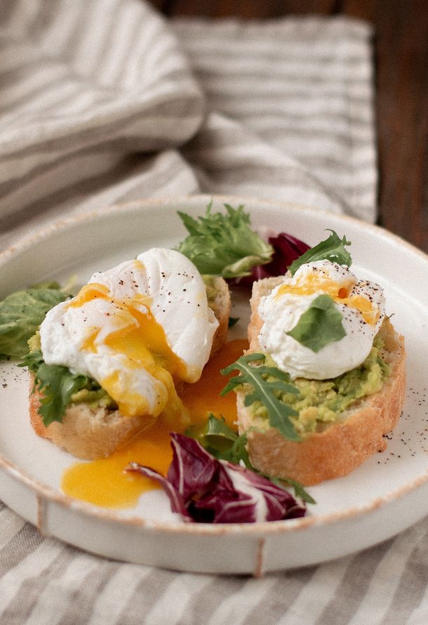Batard-Brot mit pochiertem Ei und Avocado